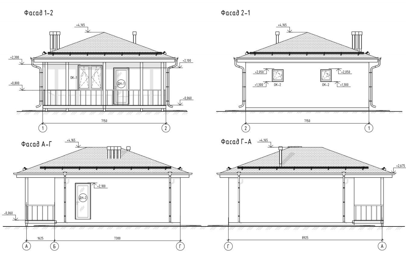 · Габаритные размеры дома в плане: 7,15 х 9,0 м