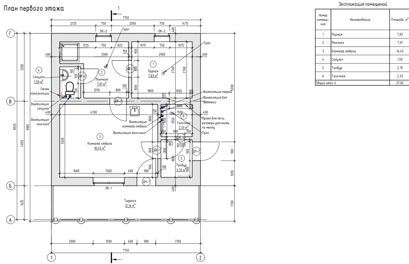 · Общая площадь здания (сумма площадей помещений): 37,82 м2