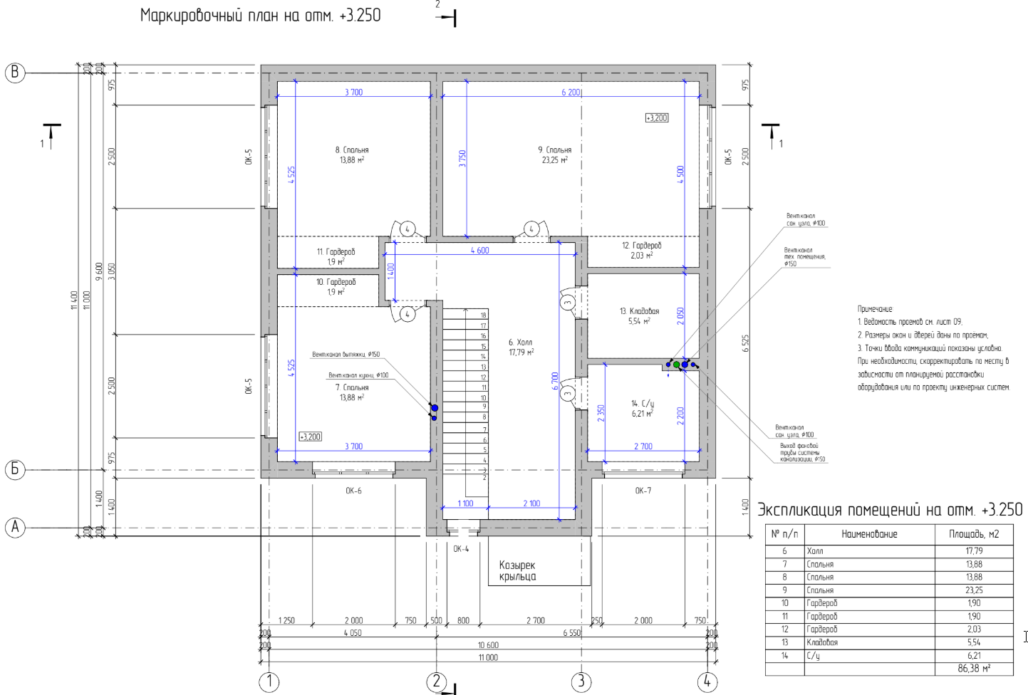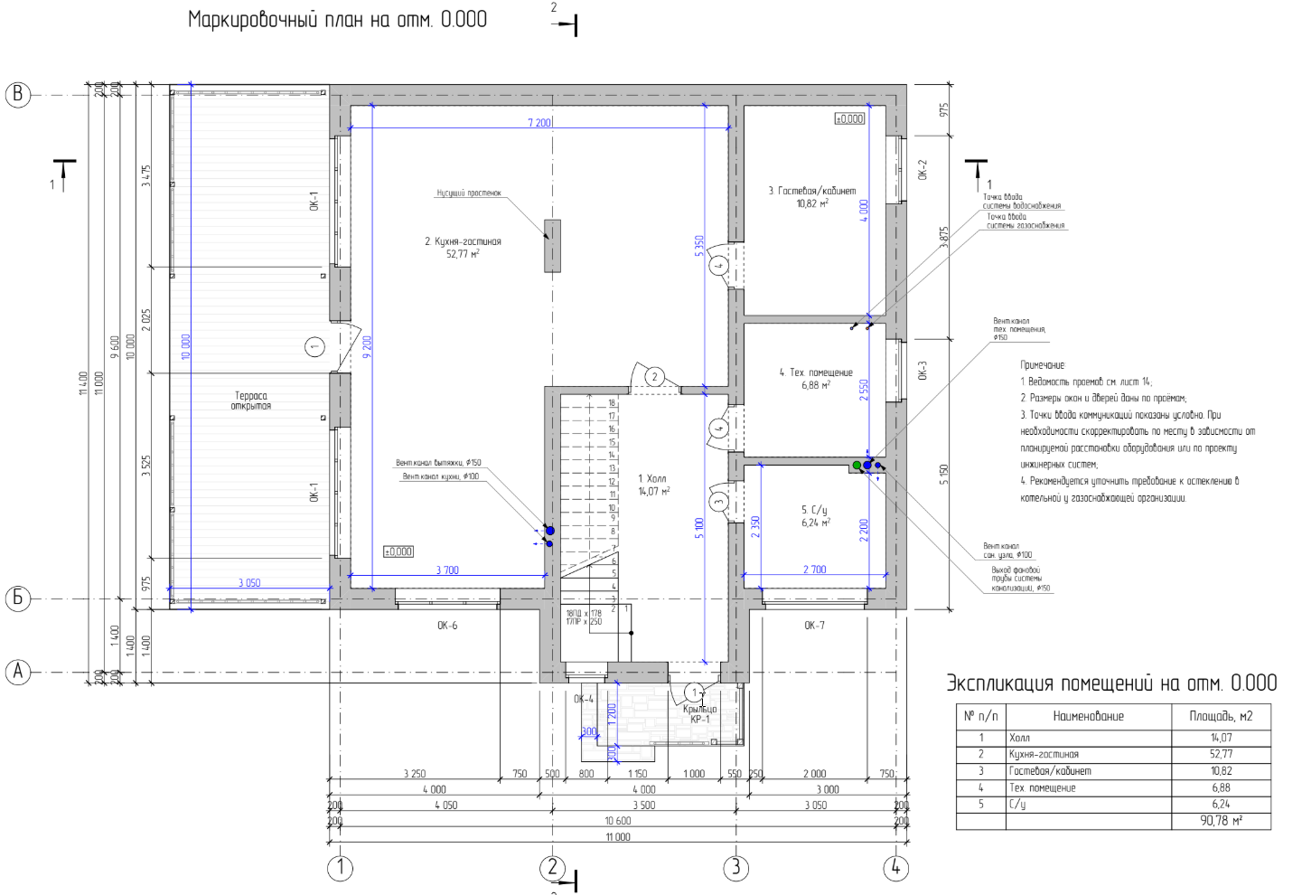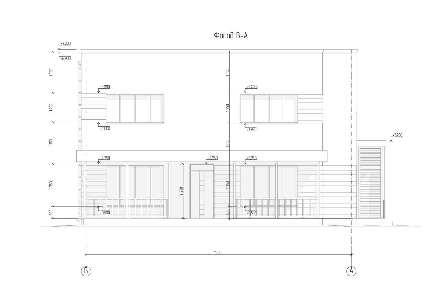 - Верхняя высотная отметка здания: +7.000 м