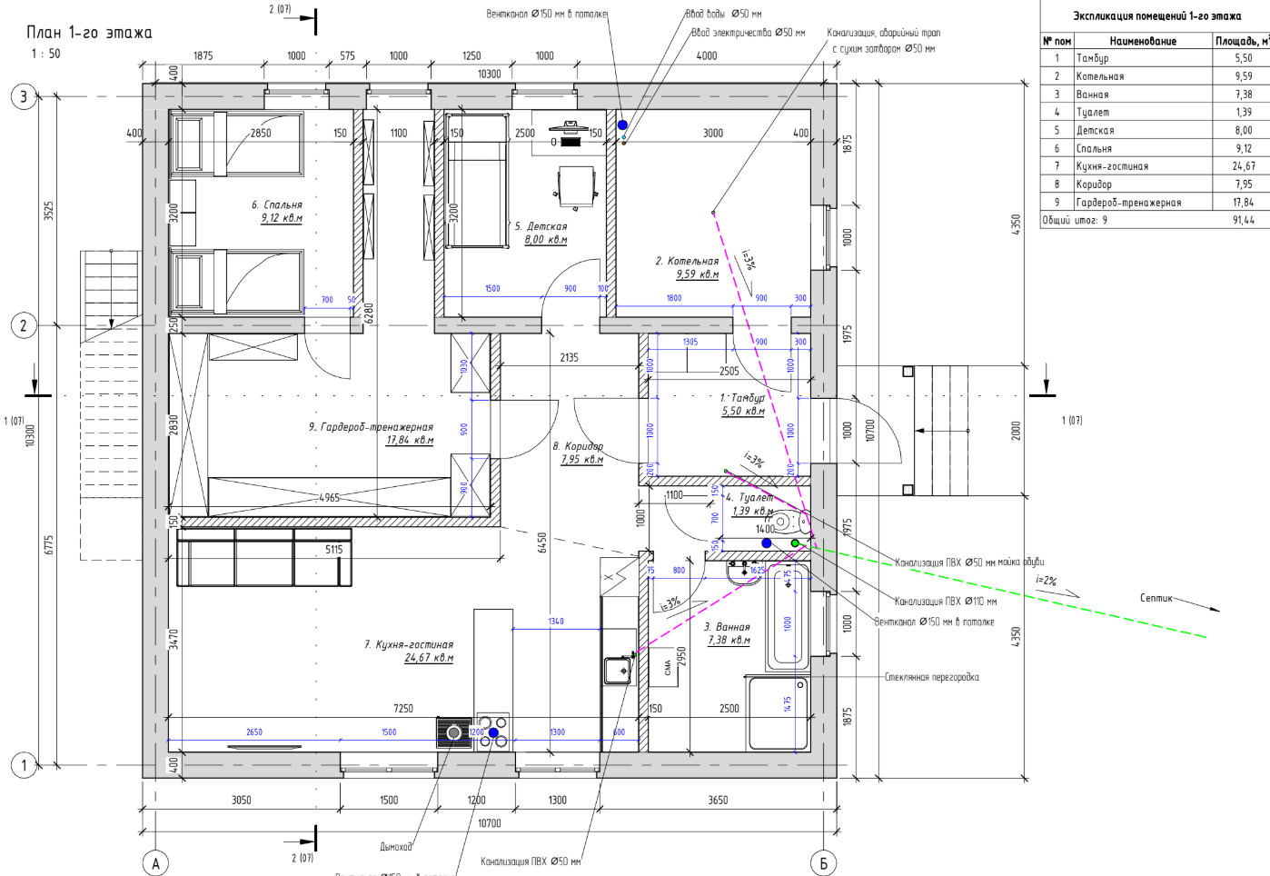 · Общая площадь здания (сумма площадей помещений) 91,44 м2