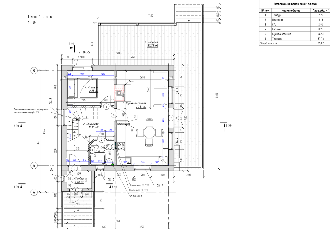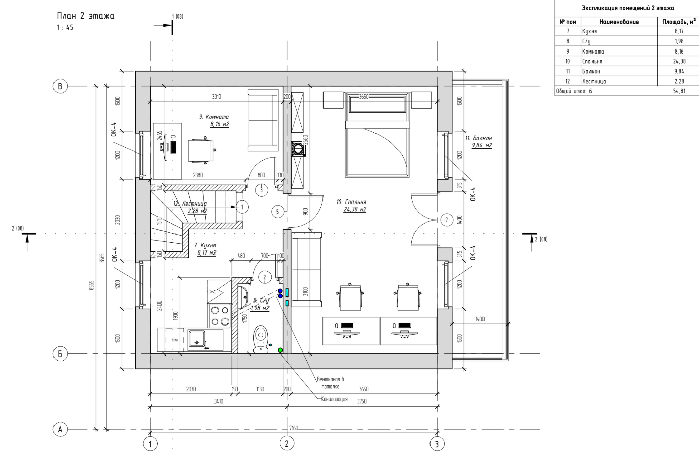 Общая площадь здания (сумма площадей помещений): 140,5 м2 .