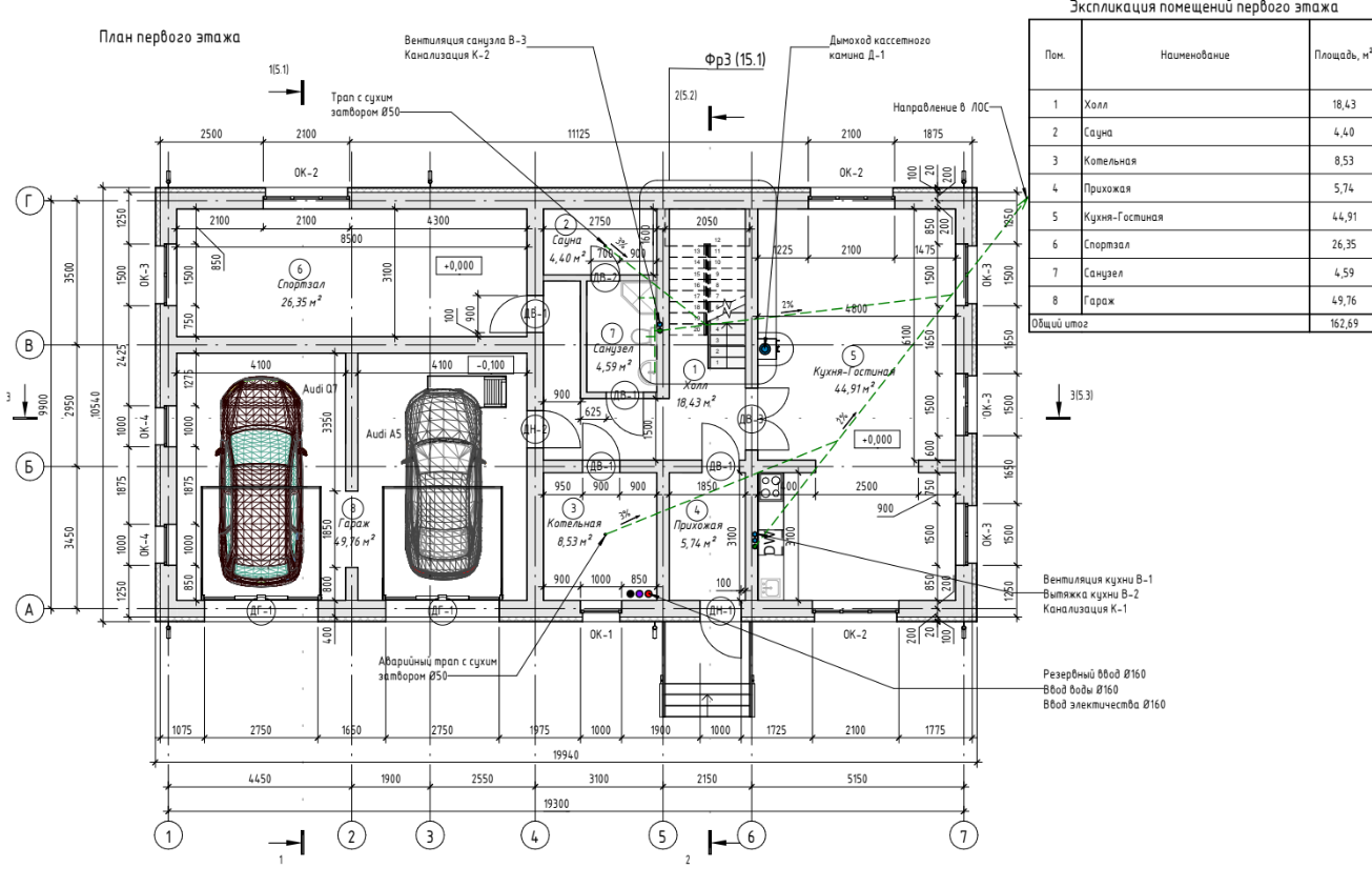 · Площадь кровли здания (с гаражом): 284,63 м2