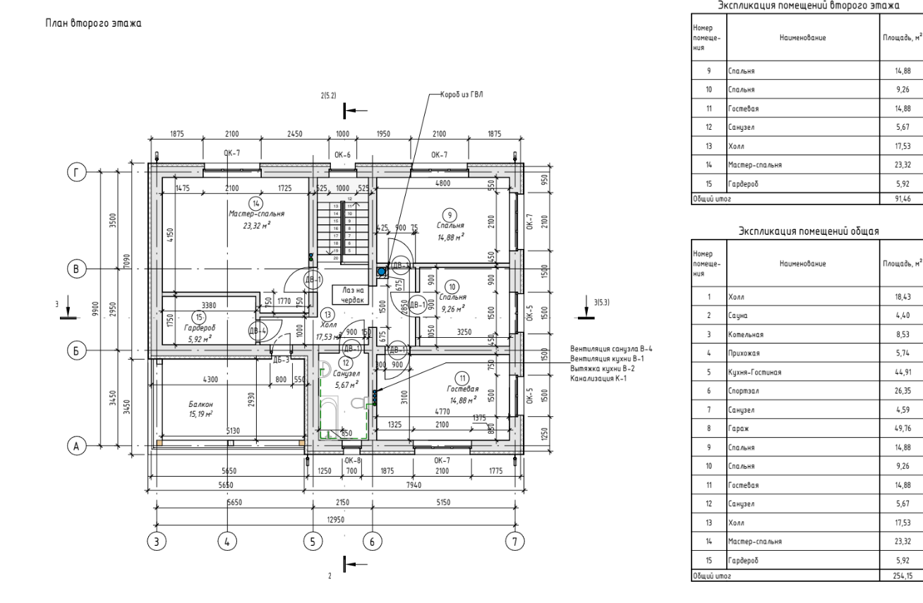 · Общая площадь здания (сумма площадей помещений): 254.15 м2
