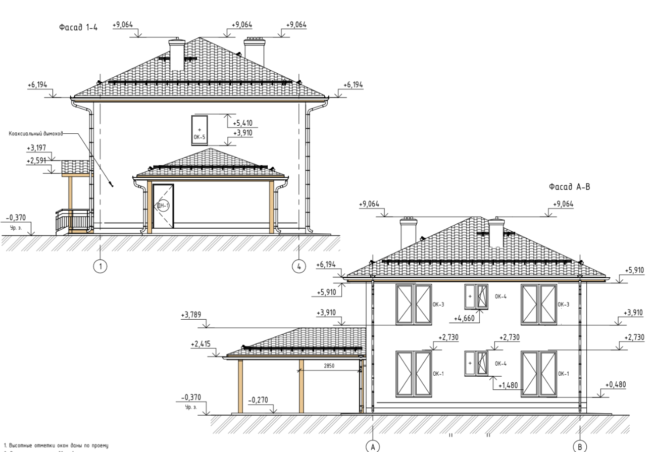 • Проектная нулевая отметка: уровень чистого пола 1-го этажа