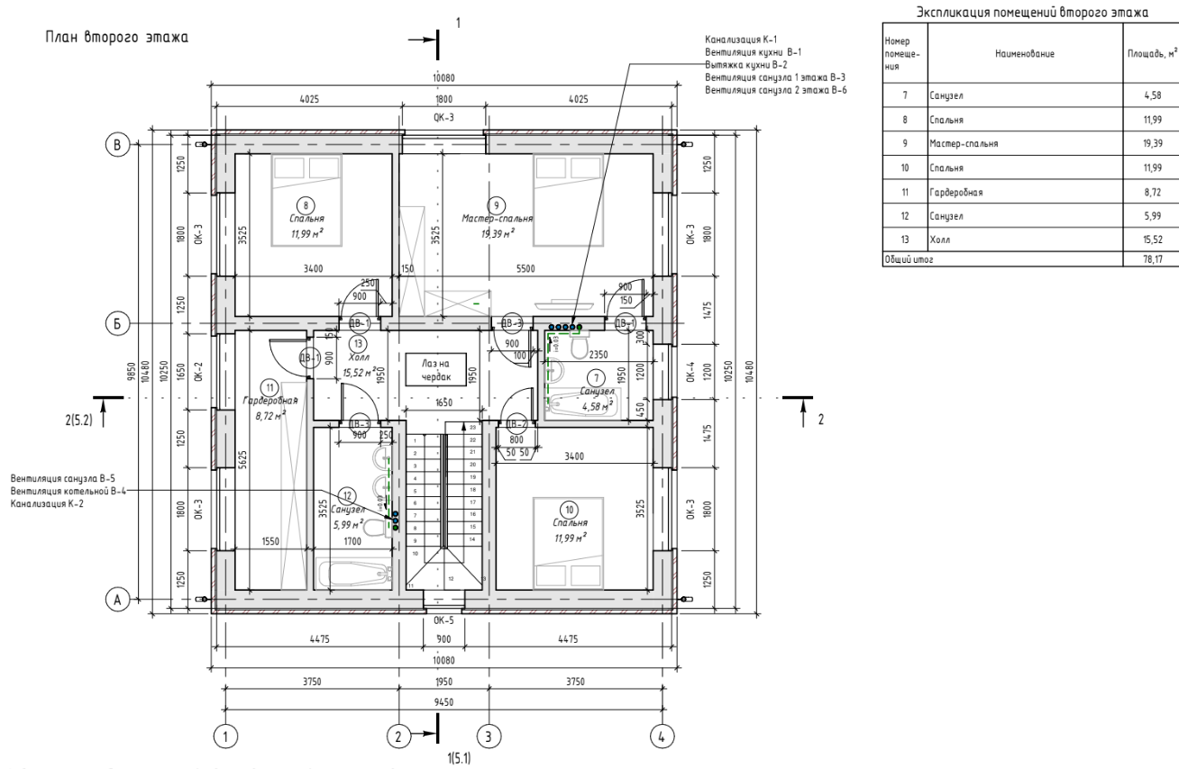 • Перекрытие над 2-м этажом: по деревянным балкам с теплоизоляцией