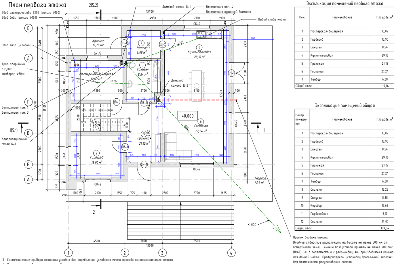 · Проектная нулевая отметка: уровень чистого пола 1-го этажа