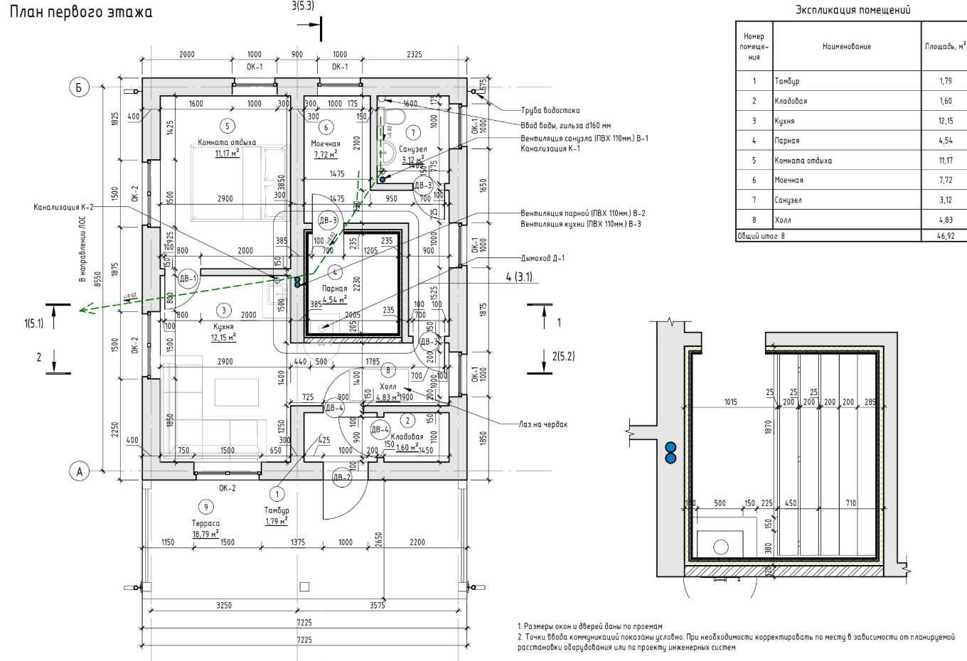 · Габаритные размеры дома в плане: 7,225 х 9 м